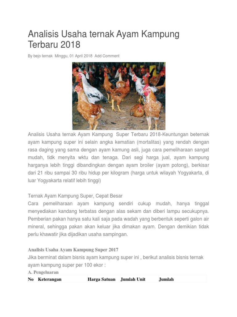 Analisa Ternak Ayam Potong 100 Ekor Archives Irdre Search