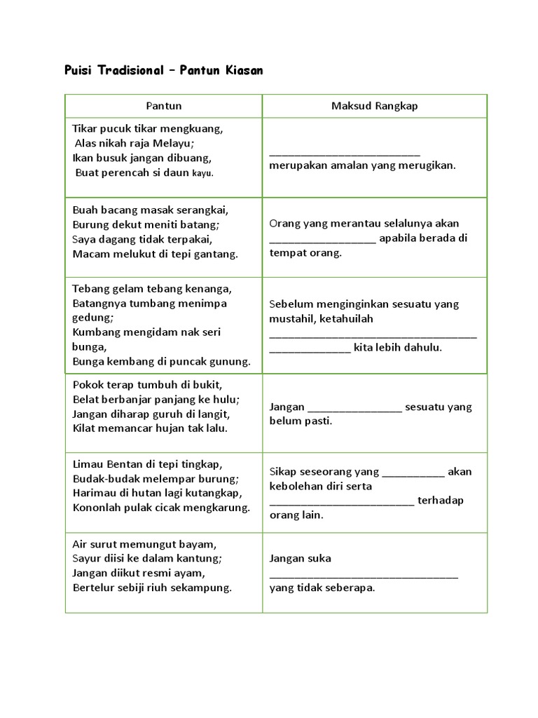 Puisi Tradisional Pantun Kiasan