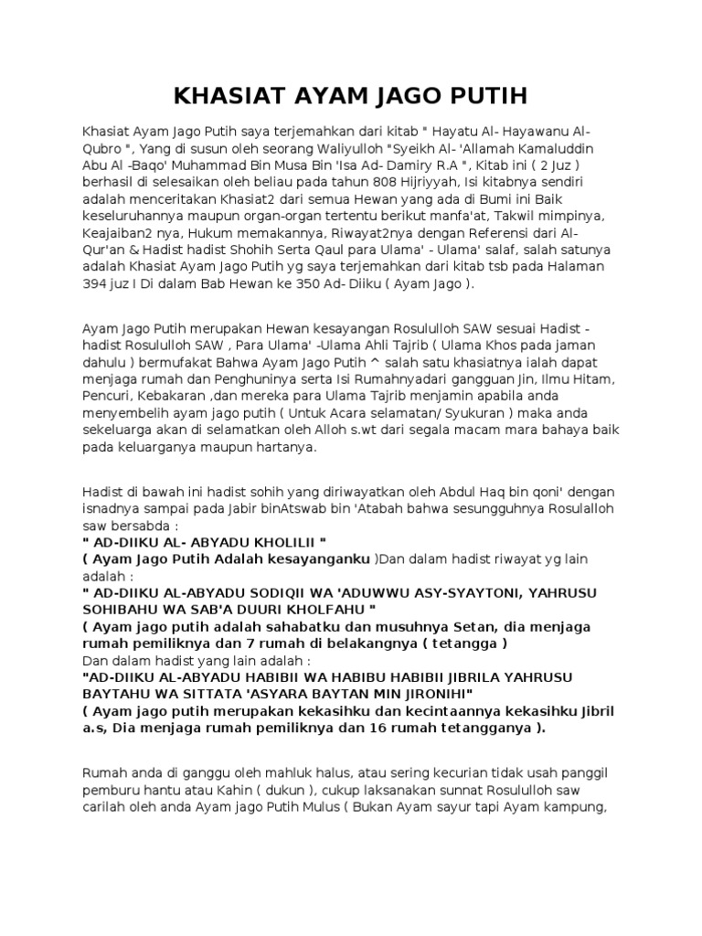 Ayam Jago Putih 4 Membangunkan Orang Shalat Dan Musuh Syaitan Serial Edukasi Laduni Layanan Digital Untuk Negeri