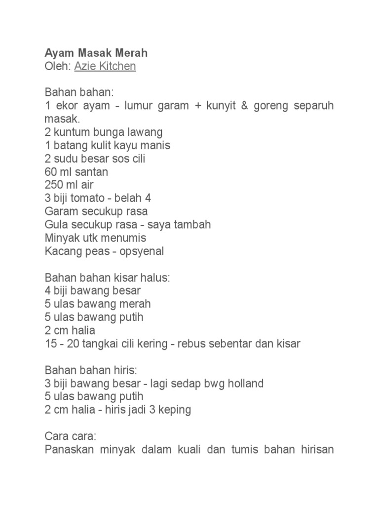Resepi Ayam Masak Palembang Azie Kitchen Resepi Book M