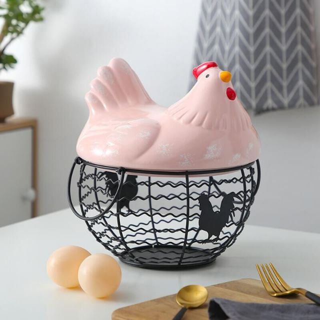Egg Basket Keranjang Simpanan Ayam Penyimpanan Telur Keranjang Tempa Besi Tempa Meletakkan Bakul Telur Keperibadian Kreatif Dengan Hiasan Penutup Shopee Malaysia