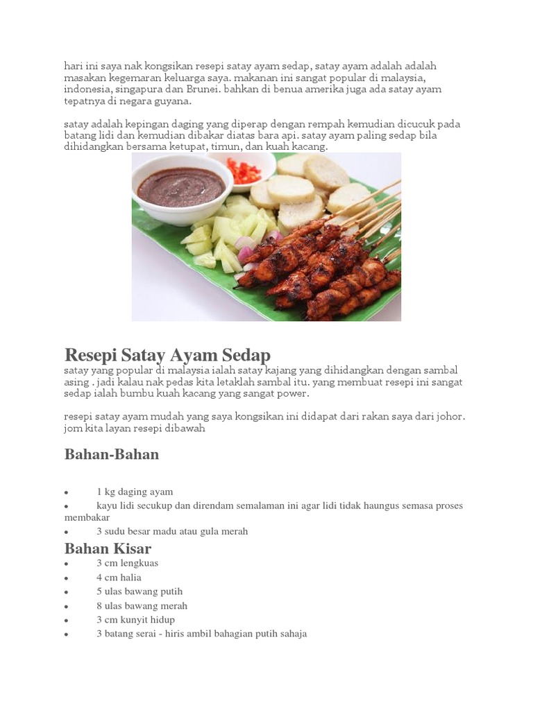 Resepi Sate Ayam Dan Kuah Kacang Terlajak Lazat Saji My
