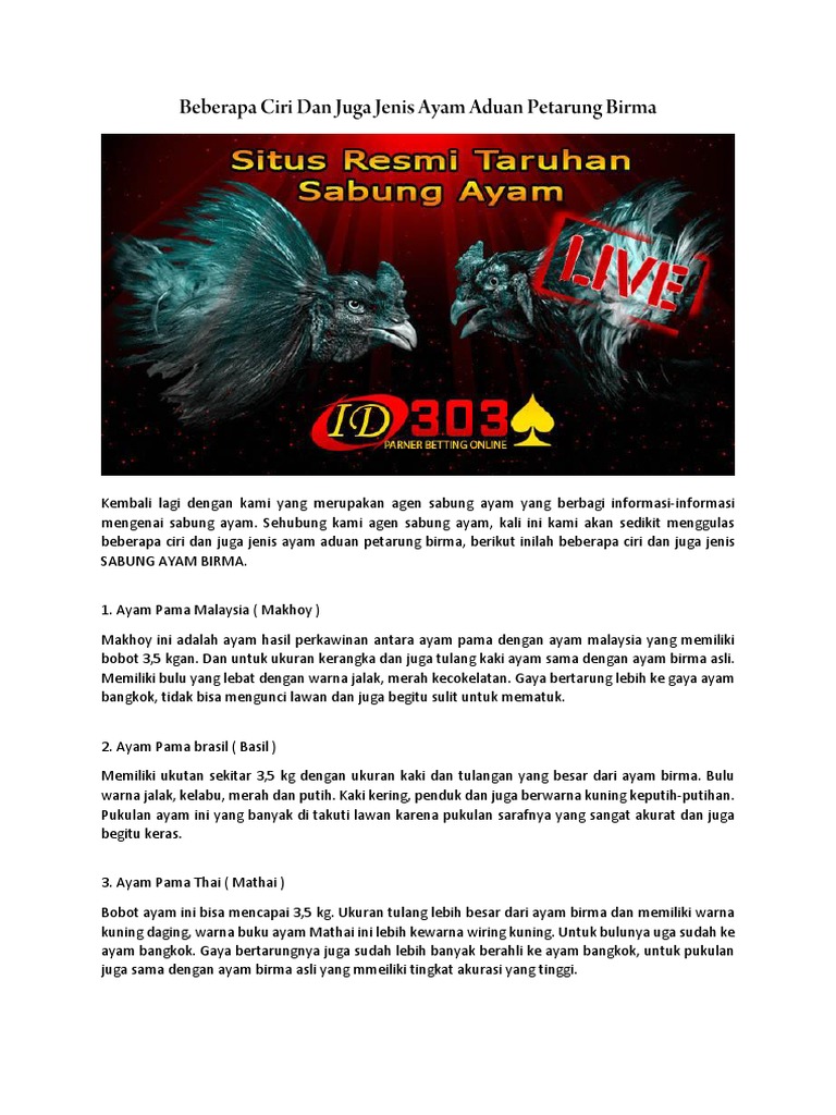 Jenis Jenis Ayam Laga Paling Populer Di Dunia Sabung Ayam By Oke303 Agen Sabung Ayam Medium