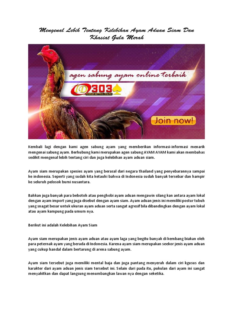 Mengenal Lebih Tentang Kelebihan Ayam Aduan Siam Dan Khasiat Gula Merah