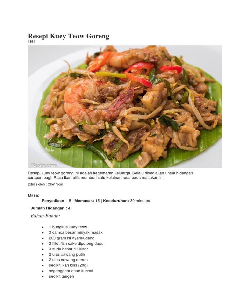 Resepi Kuey Teow Goreng Sedap Dan Mudah