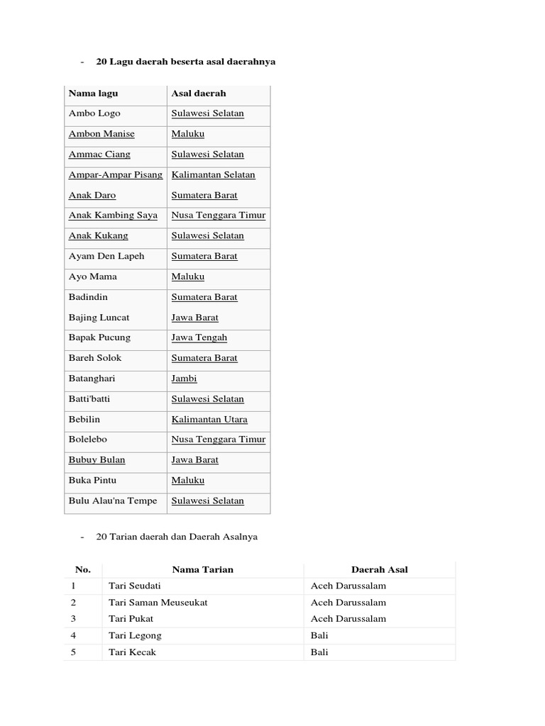 34 Provinsi Lirik Lagu Daerah Di Indonesia