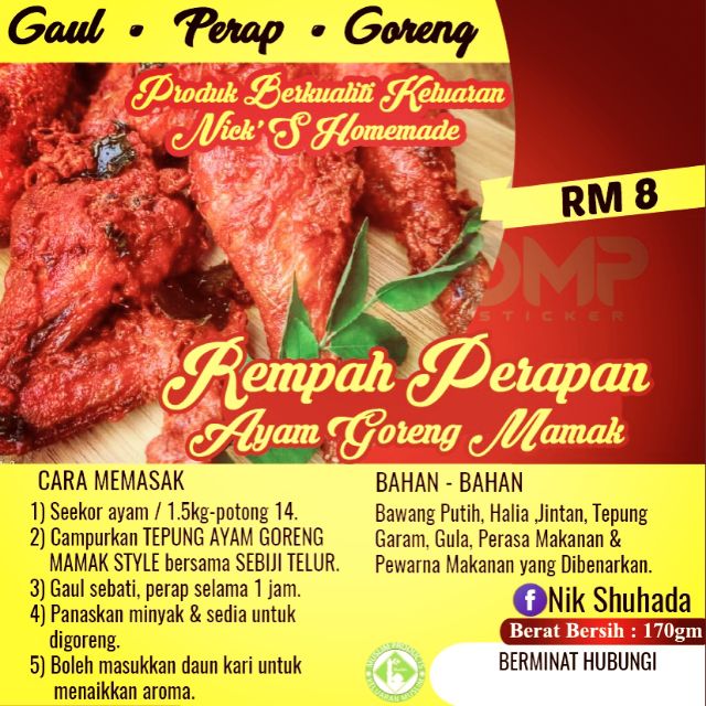 Ready Stock Rempah Perapan Ayam Goreng Mamak Style Perapan Viral Ayam Ketagih Ayam Goreng Mamak Rempah Viral Shopee Malaysia