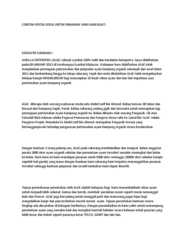 Contoh Kertas Kerja Untuk Pinjaman Yang Kami Buat