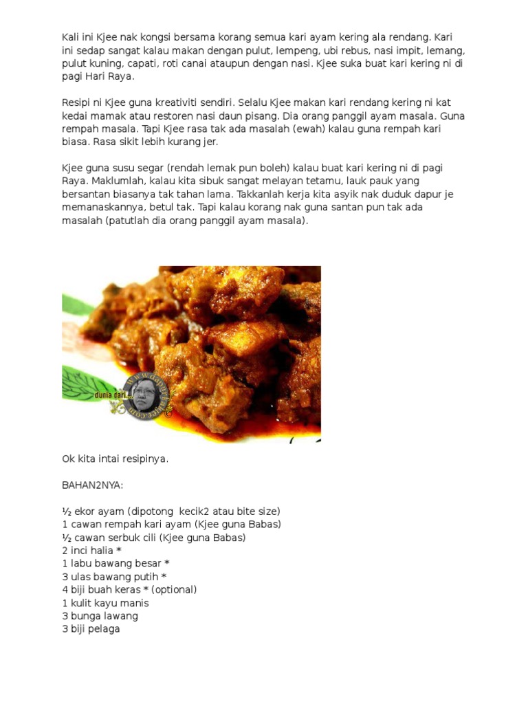 Resepi Kari Ayam Pulau Pinang Agustus Wx