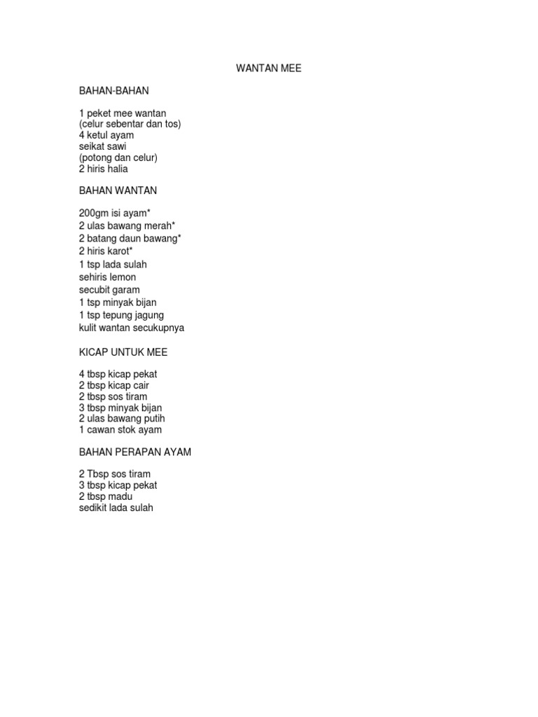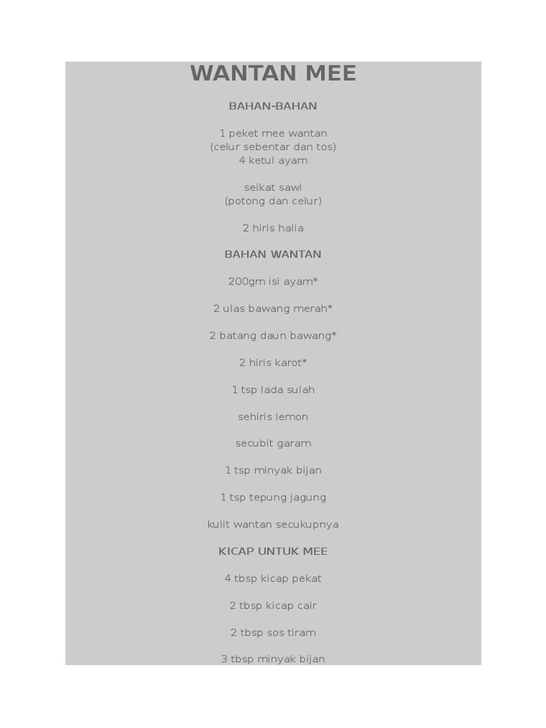 Resepi Mee Wantan Sedap